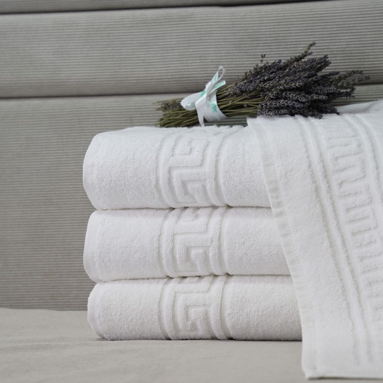Prosopul Greek este realizat din 100% bumbac de cea mai bună calitate, așa-numitul bumbac virgin, având un model tipic grecesc foarte elegant țesut pe marginile prosopului.